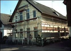Es wird geprüft, wie aufwendig der Aufbau ist. Hierbei spielen verschiedene Kriterien eine Rolle, wie z. B. die Beschaffenheit des Untergrundes, Verwinkelungen der Fassade, zu überbauende Hindernisse sowie die Erreichbarkeit des Gebäudes mit dem LKW. Nach dieser Prüfung vor Ort können wir Ihnen ein maßgeschneidertes Angebot unterbreiten. Mit Material für 50.000 m² Fassadengerüst sind wir für alle erdenklichen Objekte "gerüstet". Außerdem können wir Tanks von innen oder außen, Raumgerüste für Decke, Maschinen oder sonstige schwer einzurüstende Objekte mit dem Allround-Gerüst von Layher mühelos einrüsten.